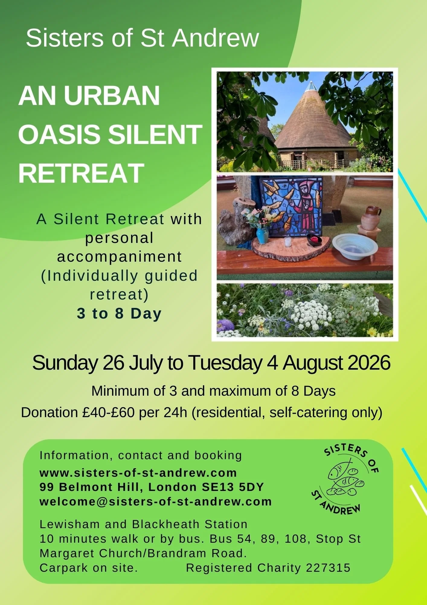 Advance booking is essential, and further details are available on the Sisters of St Andrew website.