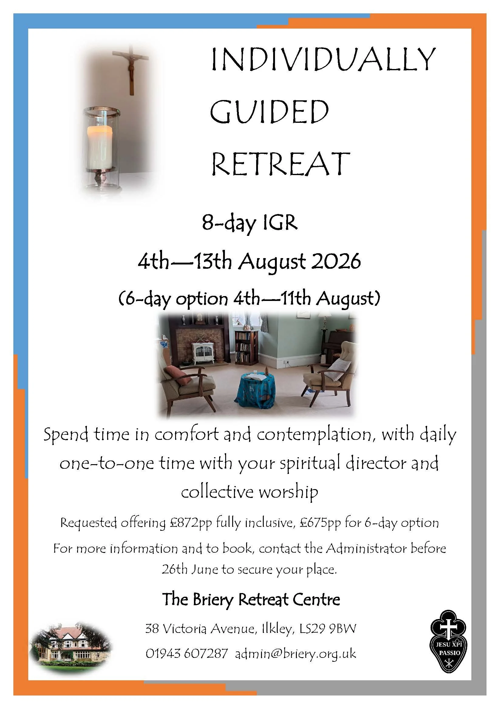 The Monastery of Our Lady of Hyning invites guests to take time apart from the busyness of daily life for an Individually Guided Retreat in the Ignatian tradition, running from Friday 24th April to Sunday 3rd May 2026 (8 days) or Saturday 25th April to Saturday 2nd May 2026 (6 days).